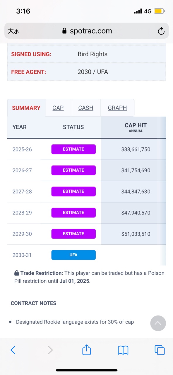 → jeff1013 : 第二張約除非你是超級新秀 前幾年就打出基石等級的 07/06 09:16