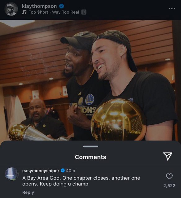 推 kobest : 勇士的ig 臉書都沒發文 然後貼柯瑞美國隊的球衣XD 07/06 13:21