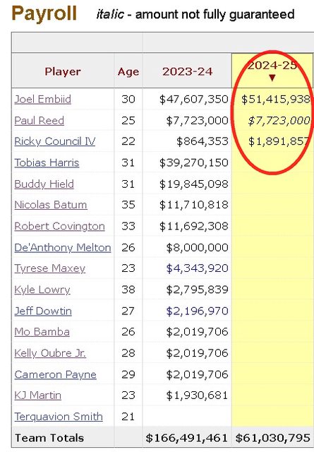補充一下76人目前薪資狀況(Bobby Marks這邊已加上Lowey合約2M):