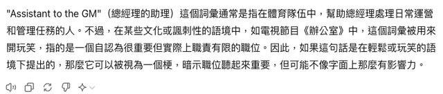 推 CotyHsu : Assistant to the GM 是美劇辦公室的梗吧 07/16 14:16