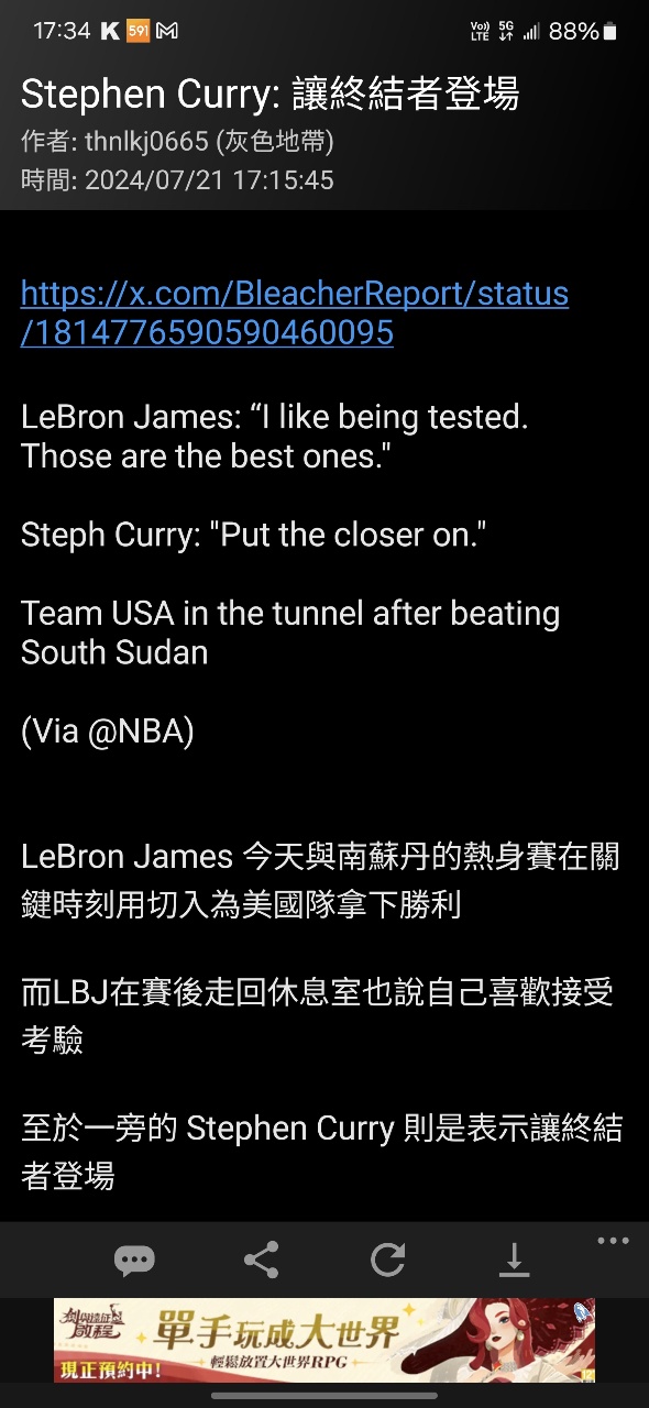 → ginobili38 : LBJ超級不適合最後一擊 但他可以創造空間給CURRY KD 07/20 11:01