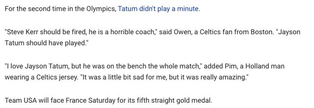 → pippen2002 : Tatum 兩度在奧運坐板凳!一分鐘都沒打 (不會受傷啊 08/10 09:05
