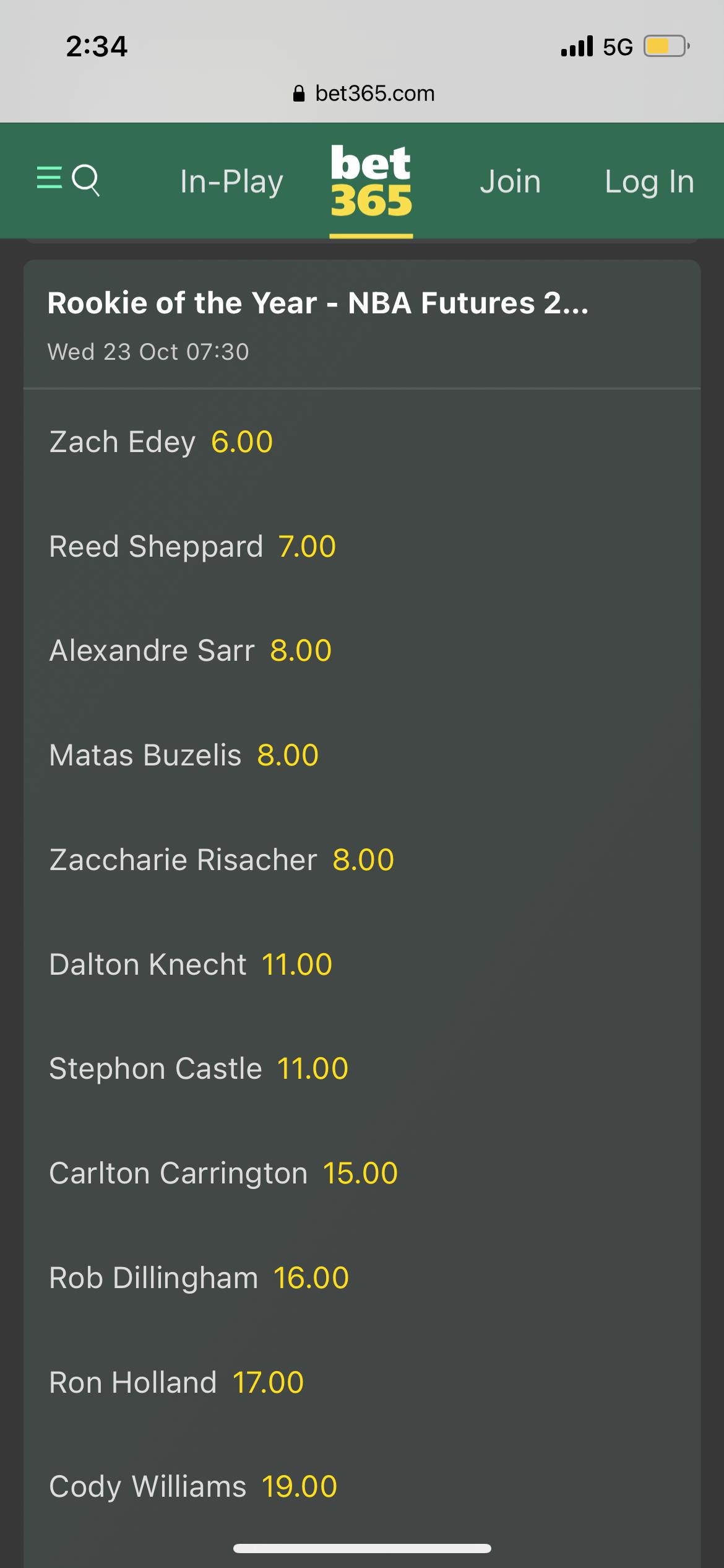 → jeff1013 : 賭盤目前也是Edey第一啊 08/27 14:35