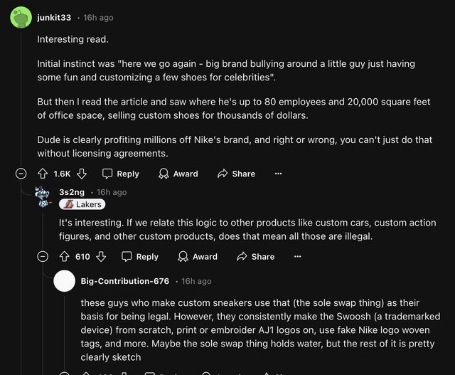 推 allyourshit : 拿假鞋來貼nike商標販售 當然是侵權 告他很合理 09/11 19:40