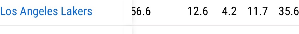 推 bm1041644 : 另外湖人場均三分出手量是聯盟墊底的31.0顆 第一是 09/25 17:22