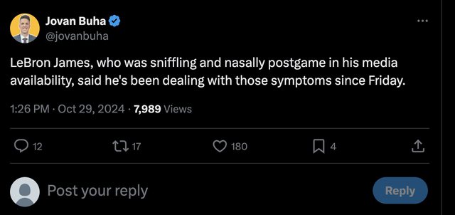 → l2l : 上週末就有症狀 他前一場贏也沒拿感冒來吹吧 10/29 14:39