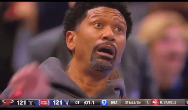 https://x.com/clutchpoints/status/1856532713077125195 Jalen Rose watching Erik Spoelstra call a timeout he didn't have and giving the Pistons the win over the Heat Jalen Rose看著Spo喊了一個不存在的暫停,幫助活塞戰勝熱火隊 https://i.imgur.com/I15CNY5.gif