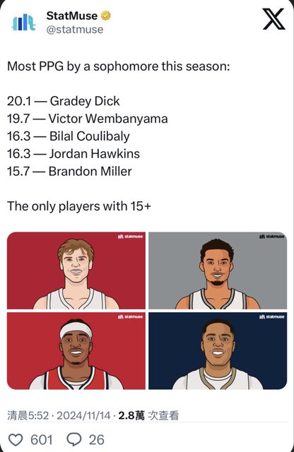 推 KarffA : Dick的每次觸球得分是很高的,他不需要大量持球, 11/14 19:27