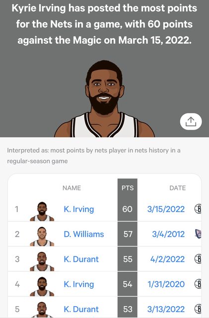 籃網隊史上只有3個人單場40分的次數比他多:Vince Carter,Kevin Durant與Kyrie