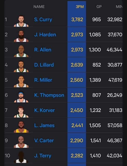 推 ymsc30102 : 鬍子一分球進球數目前歷史第五 現役第二11/18 10:39
