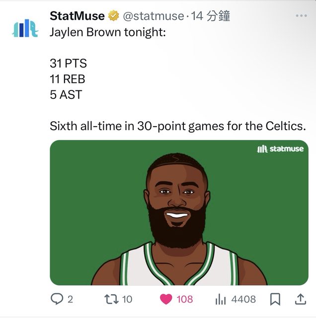 推 pp3435 : 才支持tatum mvp而已,這場打臉我了 11/23 13:25