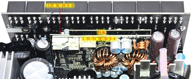 12V/5V/3.3V各路低頻漣波分別為16.8mV/13.2mV/14.8mV;於純12V全負載輸出下