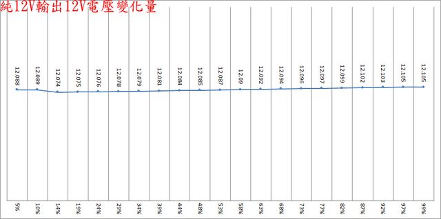 有最大12V漣波;輸出12V/10A以上12V漣波波形固定,只改變振幅。於綜合全負載輸出下