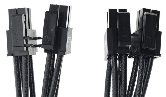 ▼2條處理器電源黑色模組化線路,提供2個EPS 4+4P接頭,線路長度70公分