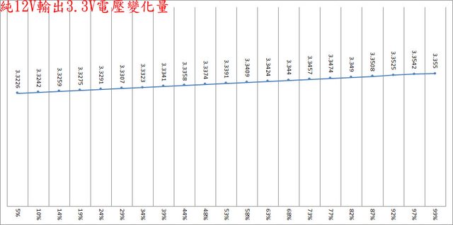 ○偏載測試,12V維持空載,測試3.3V滿載、5V滿載、3.3V/5V滿載的3.3V/5V/12V電壓變