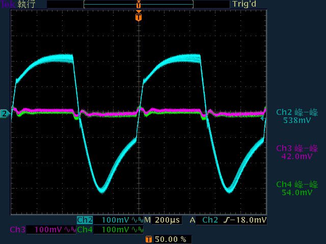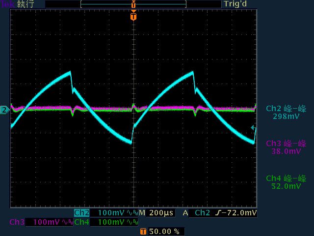 17.2mV/11.2mV/13.2mV,高頻漣波分別為12.8mV/11.6mV/13.2mV