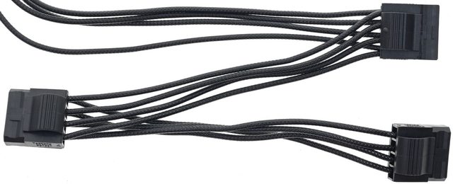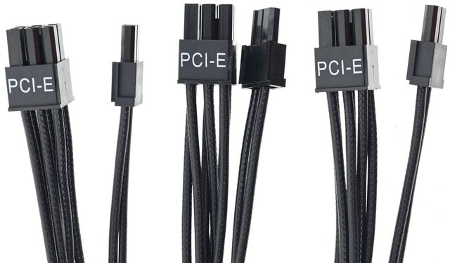 ▼3條顯示卡電源黑色模組化線路,提供3個PCIE 6+2P接頭,線路長度75公分