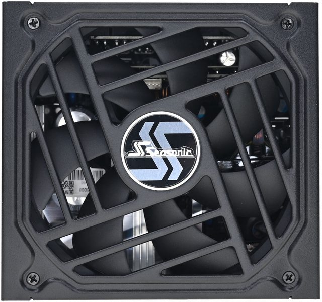 ▼直接在外殼上沖壓大型開孔風扇護網,中間有Seasonic商標銘牌