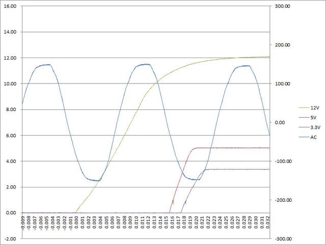 ○電源啟動至綜合全負載輸出狀態,12V上升時間26ms,5V上升時間4ms,3.3V上升時間