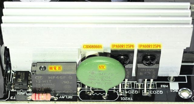 ○APFC MOSFET採用Infineon,APFC二極體採用CREE/Wolfspeed,一次側MOSFET採用