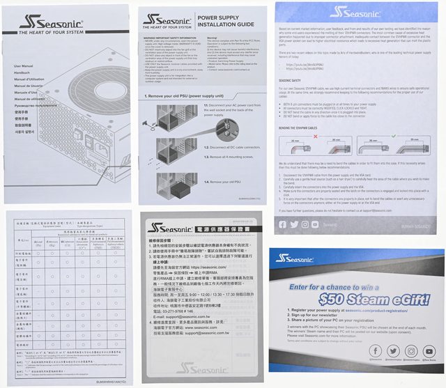 ▼隨附文件有使用說明書、安裝說明、12VHPWR注意事項、限用物質列表、保證書、STEAM