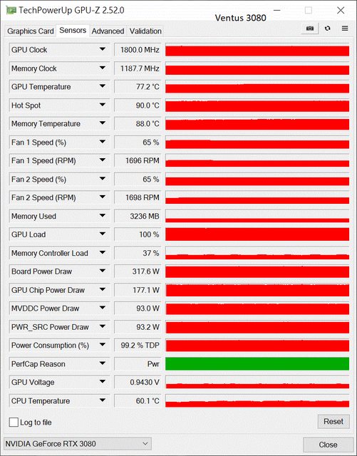 3080 trio 功耗限制到只有320 的話,熱點溫度只有85度。