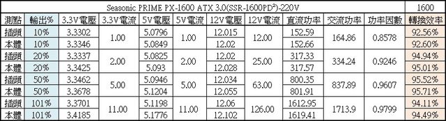 幅。於綜合全負載輸出下12V/5V/3.3V各路低頻漣波分別為11.6mV/6.8mV/7.6mV;於純12V