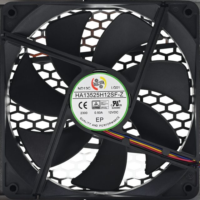 ●採用13.5公分FDB軸承風扇,具備海韻專利Hybrid Silent Fan Control模式,開啟後於