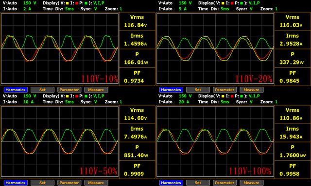 ○110V輸入的20%/50%/100%輸出轉換效率分別為94.08%/94%/91.65%,符合80PLUS白金認