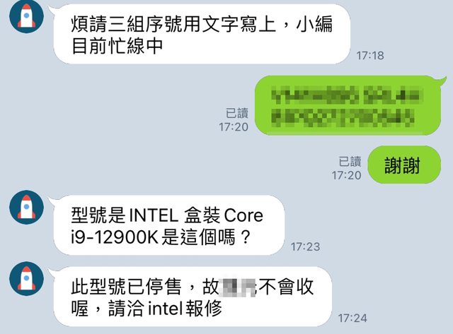 → kisia: INTEL原廠RMA簡單 代理商就不太需要 122.118.9.81 10/25 09:48