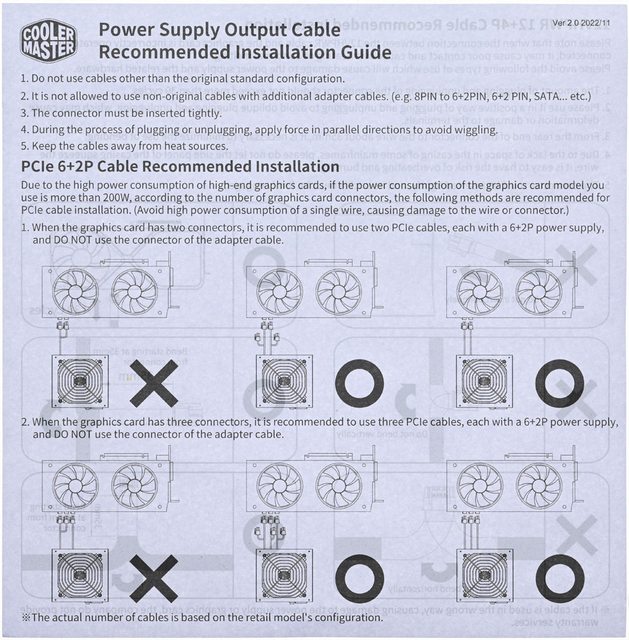 ▼電源輸出線組建議安裝方式說明書的正面有PCIe 6+2P建議連接方式