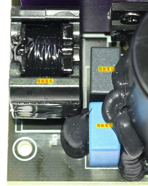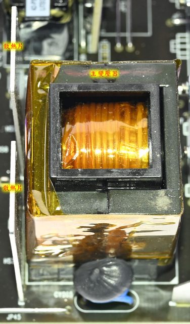 振電感/主變壓器(上圖)及主變壓器/二次側/DC-DC(下圖)的紅外線熱影像圖(附註:安裝