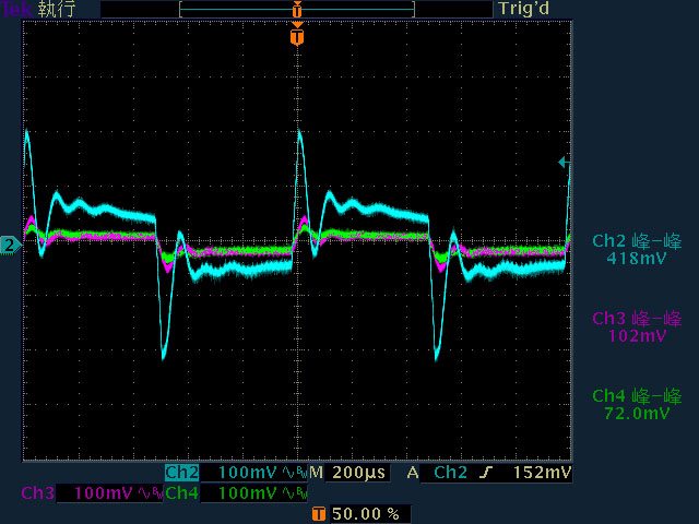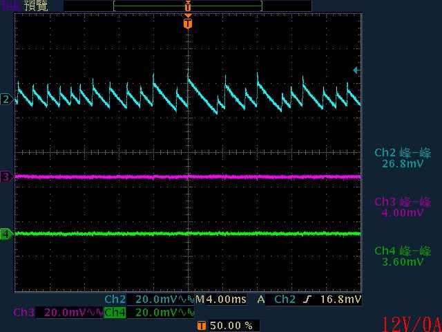40mV/13.6mV/16.4mV,高頻漣波分別為30.4mV/12.4mV/16.4mV