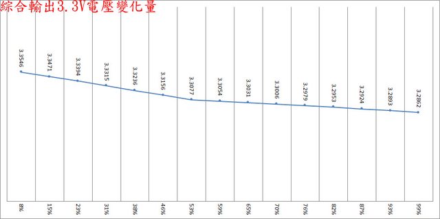 ○偏載測試,12V維持空載,測試3.3V滿載、5V滿載、3.3V/5V滿載的3.3V/5V/12V電壓變