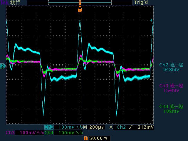 33.6mV/9.2mV/12.8mV,高頻漣波分別為33.6mV/10.4mV/12.4mV
