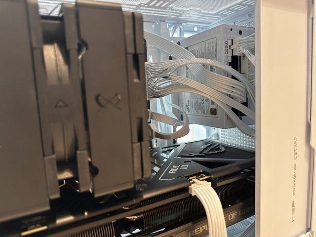 12VHPWR線材也使用少見的純白色線材+接頭,整顆電源白化程度相當高,唯一可惜是電源
