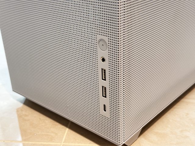 共有USB 5Gbps x2、TYPE-C 10Gbps x1 、複合式音訊插孔及開關+燈號鍵,無重啟按鈕。