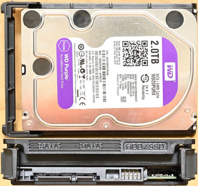 ▼固定架頂部有3.5吋硬碟(紅色箭頭)及2.5吋SSD(紫色箭頭)固定孔