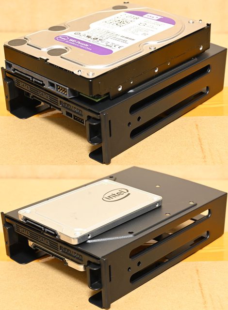 ▼固定架頂部安裝3.5吋硬碟(上)或2.5吋SSD(下)示意圖