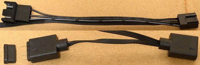 ▼4pin風扇電源線路採用方便串接的公頭+母頭設計,3pin ARGB LED控制線路同樣具備串