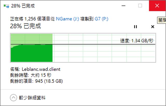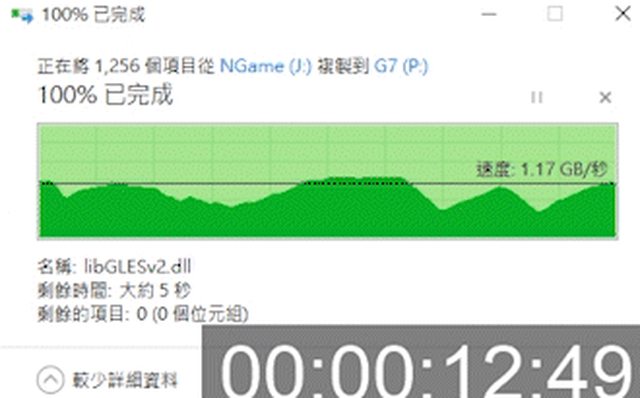 起初跑1.3g速度複製過半的時候的時候會掉落,但還是可以維持700-900mb