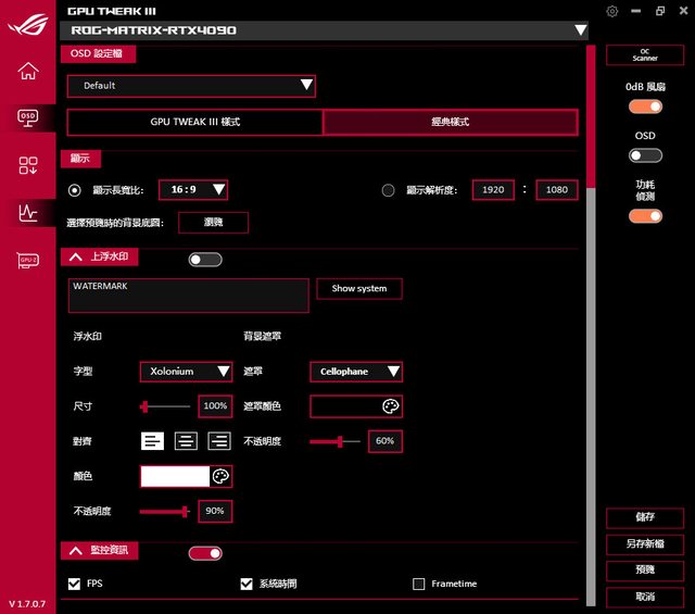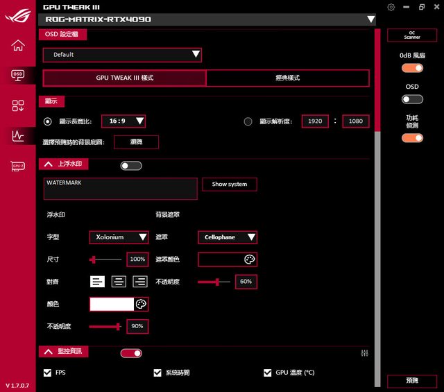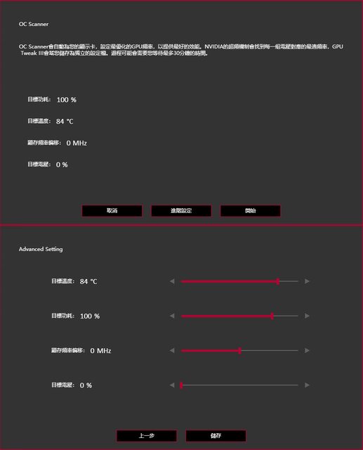 ▼超頻模式運作FurMark三十分鐘後的GPU Tweak III監控視窗及功能設定視窗