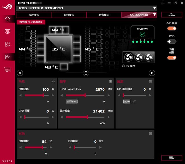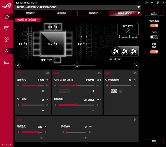 熱分布圖,監控每個區域的即時溫度;功率偵測器+可偵測12VHPWR電源接頭上6個電源針
