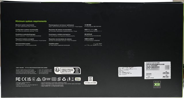 ▼彩盒底部有多國語言最低系統需求、FCC資訊、回收資訊、認證標誌、廠商資訊、中文