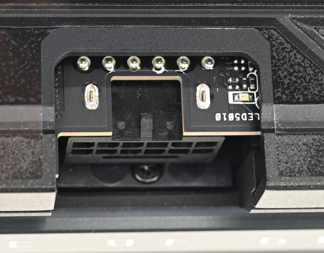 ●AURA SYNC的ARGB燈光透過正面金屬框架間接照明、背面發光ROG標誌與MATRIX字樣、水