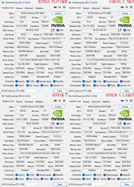 以在下測試過的4090(GAMING X TRIO、SUPRIM X、SUPRIM X LIQUID、MATRIX PLATINUM)