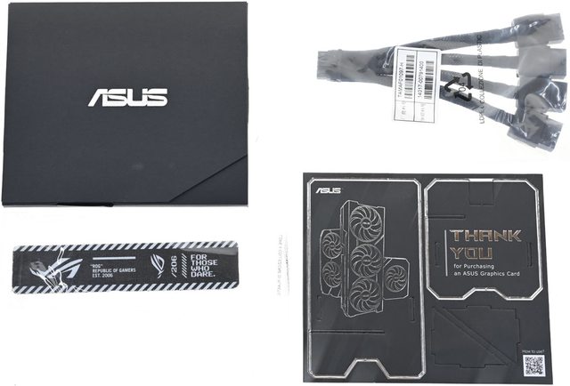 ▼其他配件有ASUS文件封套、PCIe Gen5(12VHPWR)接頭轉4個PCIe 8P插座轉接線、魔鬼氈
