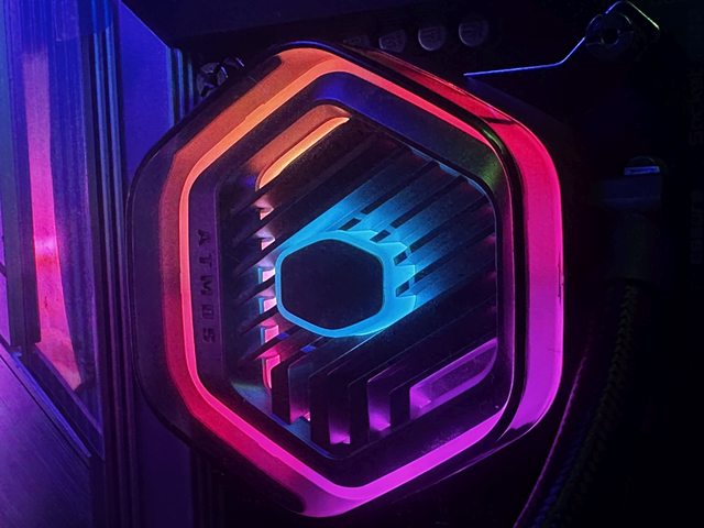 Atmos冷頭的燈效具立體感,個人還滿喜歡這種格柵效果,而且搭配彩虹燈效時冷頭會產