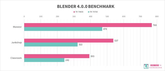使用 Blender 官網上的 benchmark,有 3 個 3D 渲染測試場景 Monster、Junkshop、Clas