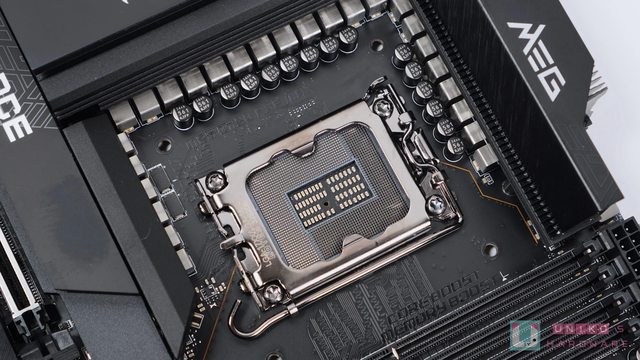 INTEL 最後一代 LGA 1700 插座,微星除了繼續堆砌 MLCC,也開了一個小洞為 LN2 極限超